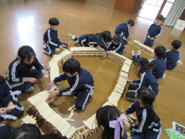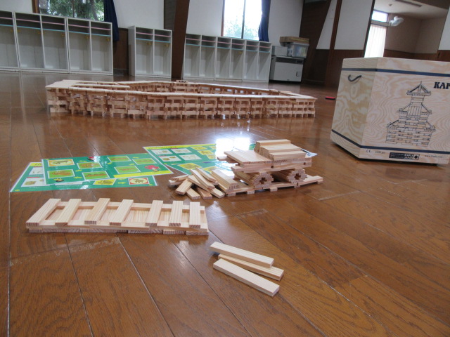 昨日、年長組はホールでカプラを楽しみました。卒園記念品で頂いたカプラはフランス海岸松を使用した評価の高い積み木で、この先何年も在園児も一緒に楽しみたいと思います。