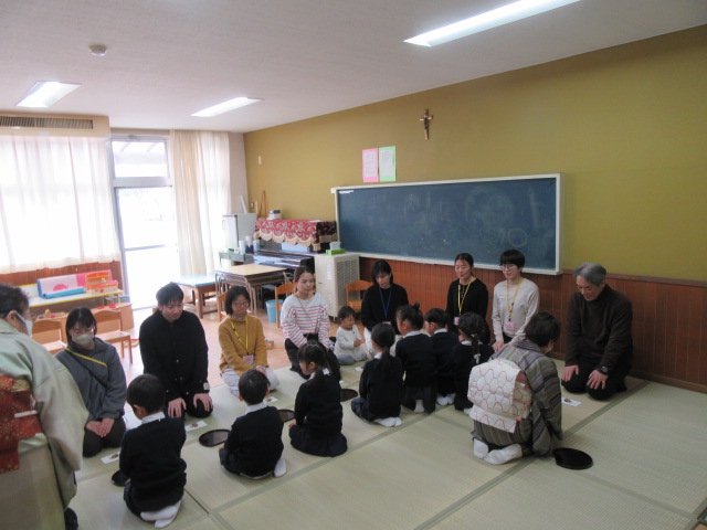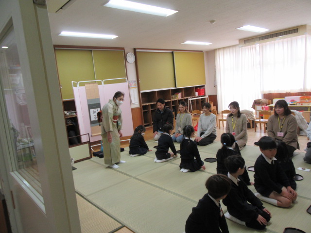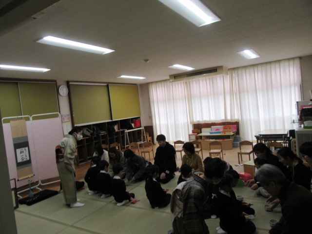 今日のお茶ごっこは、おうちの方をお招きしておもてなしをしました。静かなひとときを楽しみました。