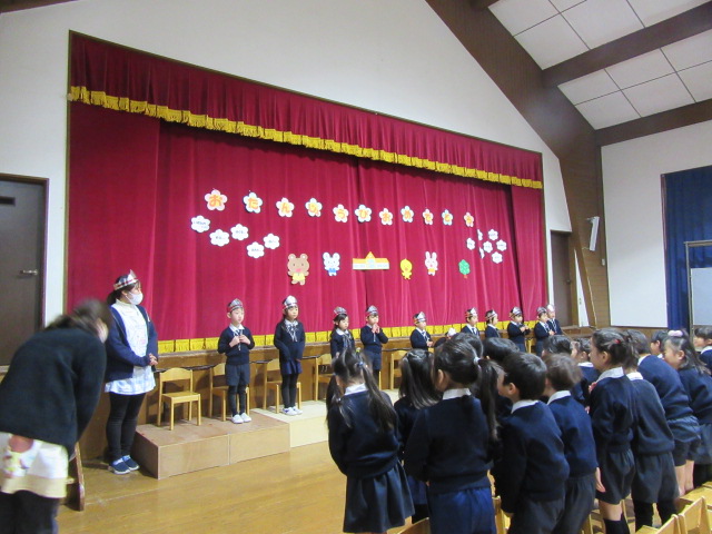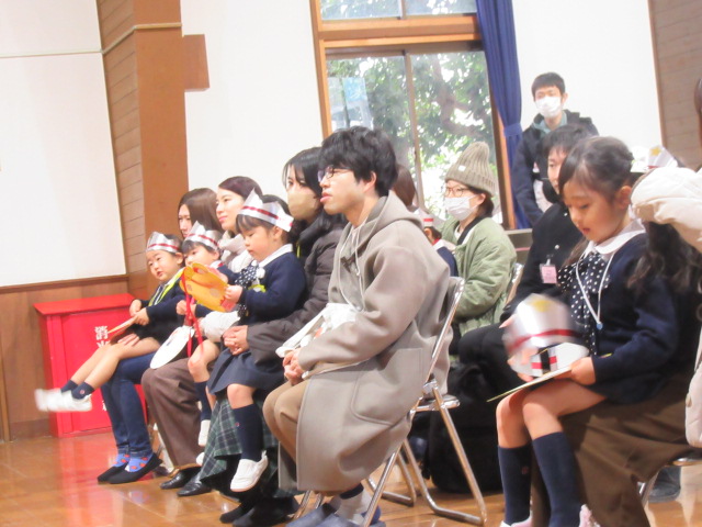 今日は1,2,3月生まれのお友だちの、誕生会でした。冠をかぶっておうちのかたの膝に乗って嬉しそうな一日でした。