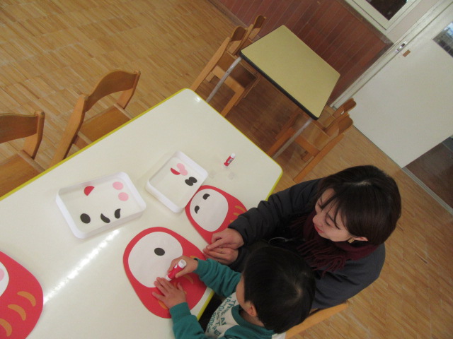 今日は「ほしのこひろば」を行ないました。室内のおもちゃで遊び、親子でサンサン体操を踊り、3歳児は「だるまの福笑い」を製作し、園庭や松林で遊びました。良いお天気の中、松林でのお弁当もおいしそうでした。未就園児「ほしのこひろば」は0歳~3歳までどなたでも無料でご参加いただけます。ぜひお越しください。