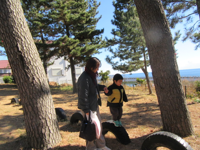 広々とした園庭、海を見下ろす芝の上に生えた松林、海の見える聖堂。