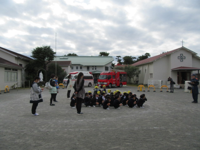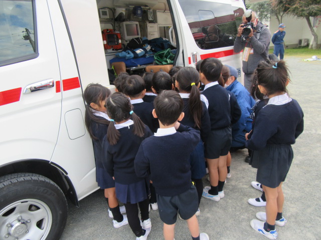 今日は火災を想定した訓練を行いました。消防車や救急車を見せていただいたり、防火服を試着させていただいて、消防士さんの大変さやカッコよさを学びました。