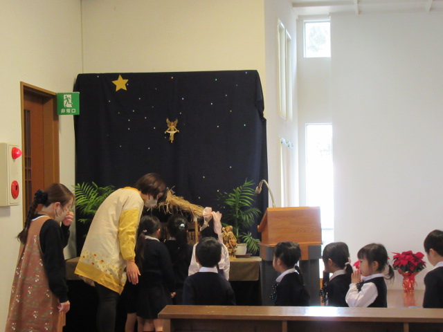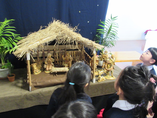 今日は、2学期を無事に終えられたことを、教会で神さまに感謝しました。クリスマス献金もお捧げし、世界中のお友だちが幸せにクリスマスを迎えることができますようにお祈りしました。