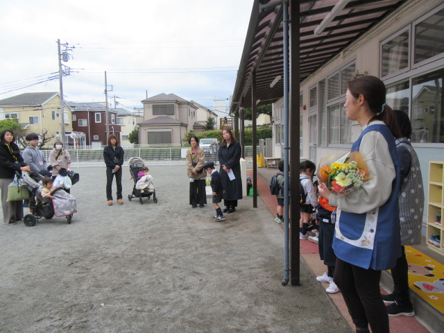 今日は、たくさんの方々にお祝いしていただき卒園式を終えることが出来ました。少し風が冷たい中でしたが、一人も欠けることなくみんな元気に巣立つ姿を、嬉しく見送りました。