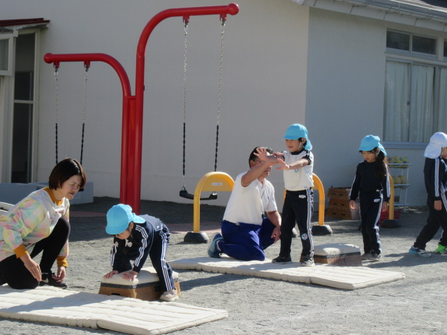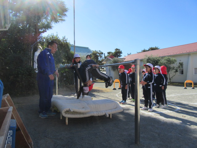年少組は縄あそび、年中組は縄跳びと跳び箱、年長組は縄跳びとドッチボール。それぞれの学年に合った体操を伸び伸び行いました。