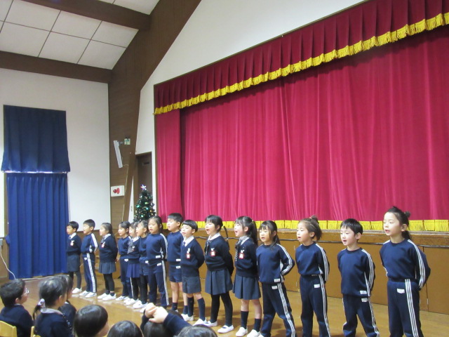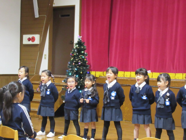 今日はホールで、クリスマス会の予行練習をしました。衣装を着て本番のようにがんばりました。他のクラスの演技を、お客様さまになって見るなど、ドキメキしながら楽しく過ごしました。