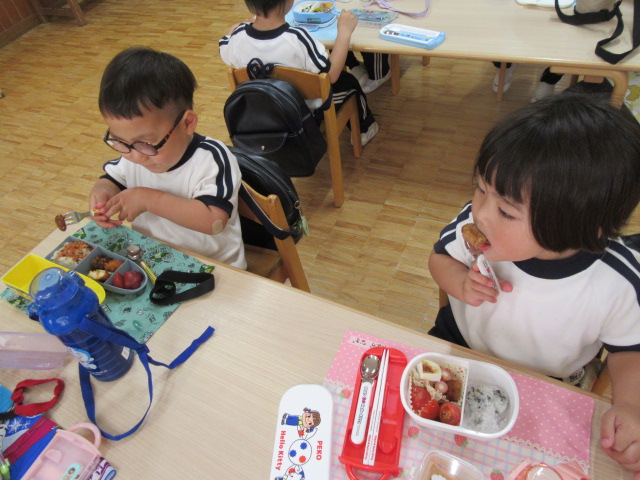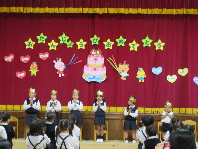 新年度がスタートし、幼稚園中に元気な声が響いています。外遊びのほか、避難訓練では一生懸命先生のお話を聞いたり、たんぽぽ組もお弁当を嬉しそうに食べる様子が見られます。昨日のお誕生会も楽しく過ごしました。